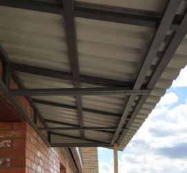 Компании могут предлагать разные цены на возведение крыши (навеса). Все зависит от материалов. Навес можно изготовить полностью из дерева с опорой на остекление, а можно сварить каркас из металлических ферм — надежный вариант, но он дороже. Мы делаем балконные кровли на металлокаркасе. Гарантируем безопасность, устанавливаем в срок, используем сертифицированные материалы, делаем скидки на комплектующие.